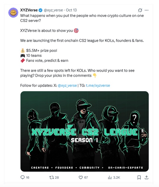 XYZVerse conferma il suo ruolo di meme coin dedicata allo sport e alla competizione. Il team si prepara al lancio della prima lega di Counter-Strike 2 alimentata da criptovalute, prevista per il 1º gennaio 2026.