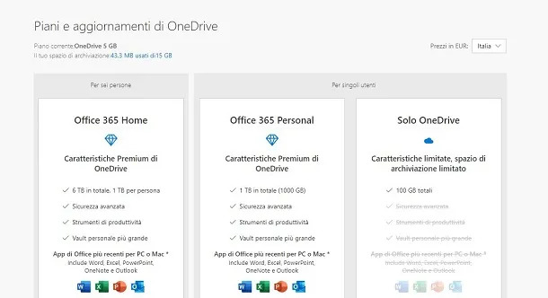 Quanto costa OneDrive?